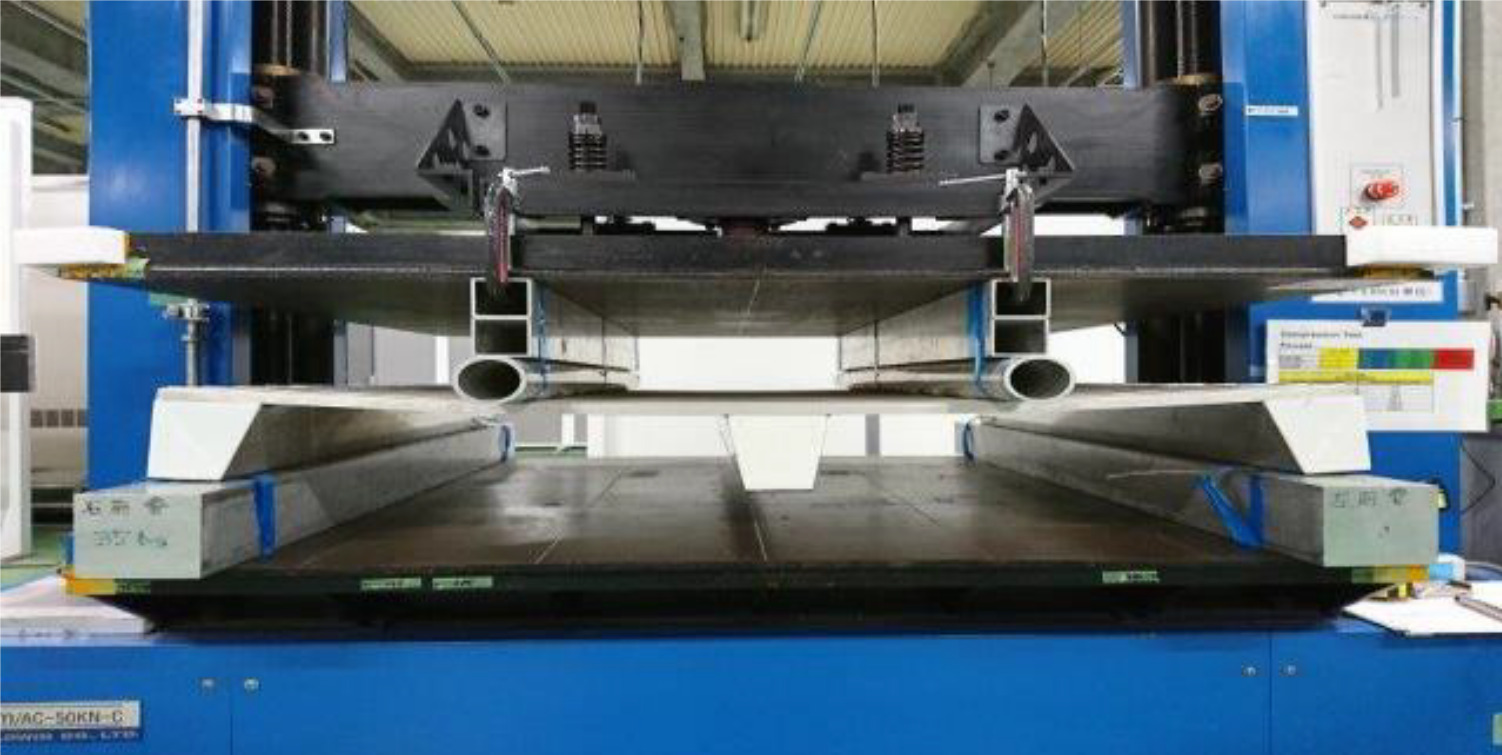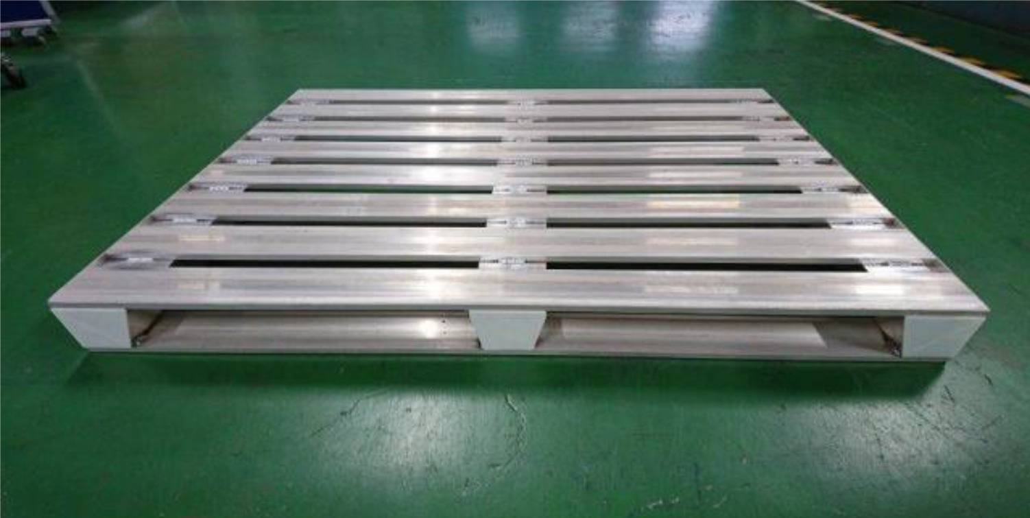 一般的に使用されている1000Kg積載パレットは社外検査機関にて JISZ0602-1988 平パレット試験(曲げ、脚部圧縮)を実施し、JISZ0605-1989金属製平パレットの基準値(現行基準)に適合しました。